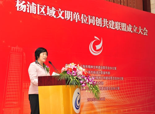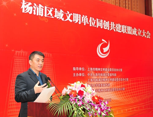 新闻中心讯 10月30日下午,上海市首家文明单位区域联盟——杨浦区域文明单位同创共建联盟,在我校隆重举行成立大会。上海市委宣传部副部长、市文明办主任燕爽,市文明办巡视员陈振民,杨浦区委副书记于秀芬,区委常委、宣传部部长高德彪、我校党委副书记刘建中等出席成立大会。