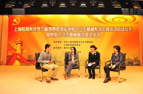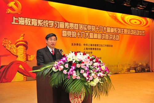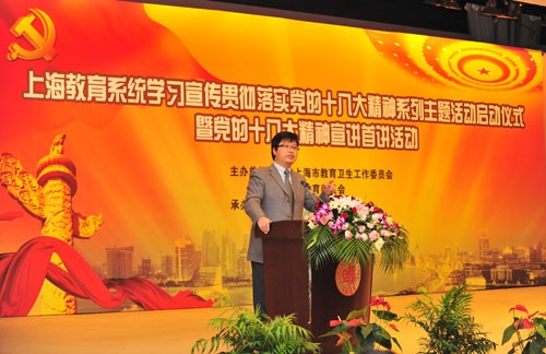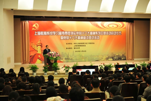启动仪式后,复旦大学副校长、国际关系与公共事务学院林尚立教授为在场师生作了专题报告。报告通过生动的语言、深入浅出的专业理论,解读了党的十八大报告中的热点问题,拉开了上海教育系统党的十八大精神宣讲活动的帷幕。据介绍,市教卫工作党委、市教委还将继续组织部分党的十八大代表及高校理论专家就党的十八大精神和群众关心的热点问题进行宣讲解读。