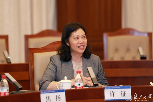焦扬代表学校,向基金会各位理事履职尽责表示衷心感谢。她指出,迈入新发展阶段,全面贯彻新发展理念、打好高质量发展主动仗,不仅是为学校“十四五”发展迈好第一步、迈出新气象,也是为复旦未来15年、30年的发展打好根基。
