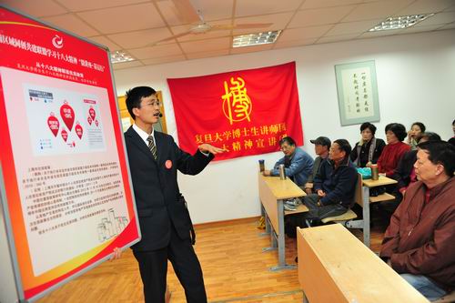 微博、微电影、微公益……各种微元素架构起信息传递迅捷的“微时代”。11月21日下午,复旦大学博士生讲师团十八大精神宣讲团分别在五角场社区文化中心和上海柴油机股份公司成功举行了两场十八大精神宣传“微讲座”,这也标志着复旦大学博士生讲师团面向杨浦区域文明单位同创共建联盟的“微讲座,基层行”十八大精神巡讲活动正式拉开了帷幕。