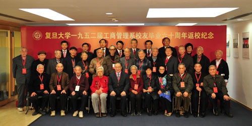 52届校友毕业60周年座谈会由管理学院陆雄文院长主持。杨玉良在致欢迎辞时表示,52届校友进入复旦之际,新中国正处于解放前的黎明;60年后的今天,国家的发展已经日新月异,中华民族正在为实现复兴梦想而努力。当年,52届工商管理专业的学生提前完成学业,服从组织安排,分赴全国各地支援祖国建设,带去了先进的管理理论和方法,为工矿企业的发展付出了智慧和汗水。老校友们求学、工作、奋斗和奉献的六十年,是新中国自强崛起六十年的缩影,每一位复旦人都铭记在心。他表示,今天的复旦面临着“长风破浪会有时”的大好机遇,今天的复旦人一定会鼓足干劲,把工作做得更好,让复旦发展得更好,不辜负各位老校友的关心。他祝愿老校友们身体健康、心情愉快。