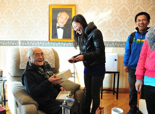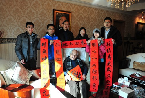 新闻中心讯 2013年1月1日上午,副校长冯晓源与获得2012年“复旦大学张明为励志奖助学金”的学生代表等人来到张明为先生家,拜访这位长期关注国家教育事业,心系复旦发展的百岁老人,向张先生表达感谢之情并送上新年祝福。