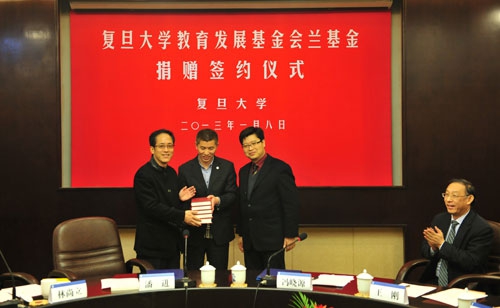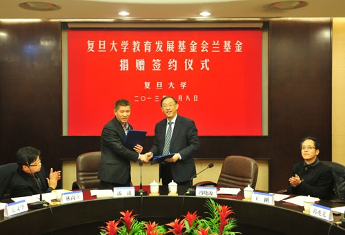 新闻中心讯 1月8日,复旦大学设立“复旦大学教育发展基金会兰基金”,将鼓励、资助当年度优秀人文类图书出版,并适时奖励影响力卓越的图书作者。当天下午,“兰基金”捐赠签约仪式在复旦大学逸夫楼圆桌会议室举行。