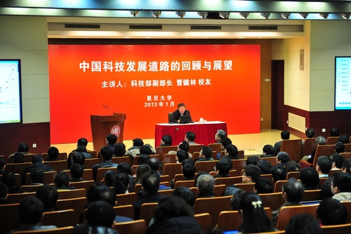 1月11日上午,应党委党校邀请,科技部副部长、我校1982届物理系校友曹健林回到母校,围绕“中国科技发展道路的回顾与展望”为党校干部培训班学员作报告。校党委书记朱之文、校长杨玉良和200多名干部师生一起听取报告,常务副校长陈晓漫主持报告会。