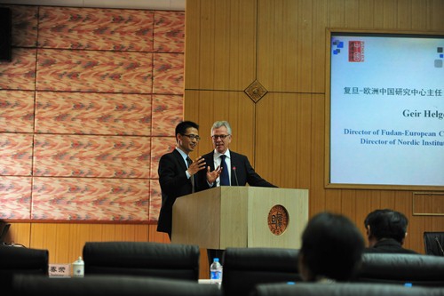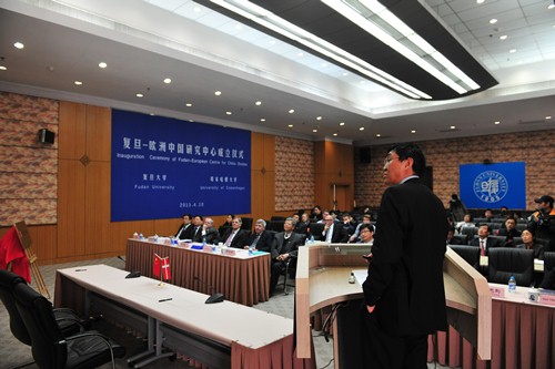 新闻中心讯 4月10日上午,“复旦-欧洲中国研究中心”成立仪式在复旦大学举行。校长杨玉良、丹麦驻华大使裴德盛、哥本哈根大学校长Ralf Hemmingsen出席仪式并致辞。北欧亚洲研究所所长、复旦-欧洲中国研究中心主任Geir Helgesen、中心执行副主任刘春荣分别对中心作了简要介绍。复旦发展研究院副院长彭希哲在成立仪式上作主旨演讲。当天的仪式由副校长林尚立主持。