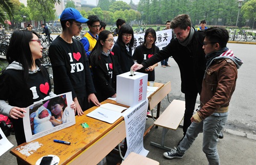 新闻中心讯 4月23日,由复旦大学学生会、研究生会发起的为雅安地震灾区人民募捐的活动在我校邯郸、江湾、枫林、张江四个校区六个地点同时举行。