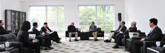 陪同尹校董到访的有台湾南山人寿保险股份有限公司上海代表处首席代表贾宁先生。学校办、文科科研处、外联处、外事处港澳台办等相关处室负责人参加了接待。