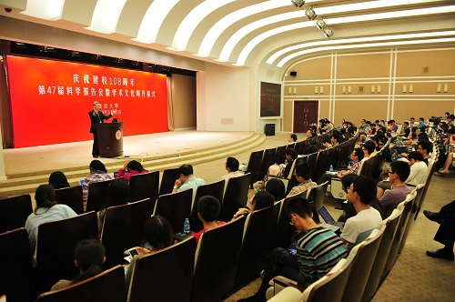 5月21日,庆祝建校108周年第47届科学报告会暨学术文化周开幕式在光华楼举行。校长杨玉良出席并致辞,常务副校长陈晓漫主持会议。