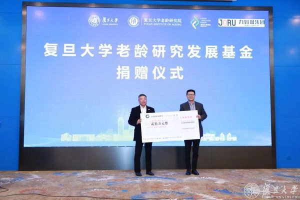 九如城集团创始人、复旦教育发展基金会理事谈义良代表九如城集团向上海复旦大学教育发展基金会捐赠,襄助“复旦大学老龄研究发展基金”。