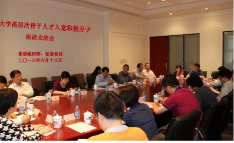 新闻中心讯 6月13日,校党委在光华楼东辅楼举行高层次骨干人才入党积极分子座谈会。校党委书记朱之文、副书记王小林、院士专家李大潜与12位骨干教师入党积极分子代表面对面,共话高层次骨干人才入党。部分院系分党委书记列席了座谈会。