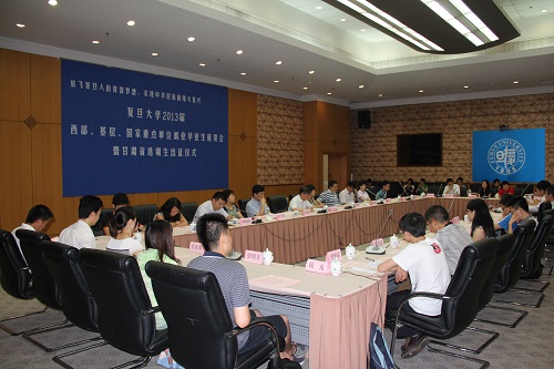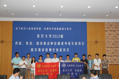 新闻中心讯 6月25日,“放飞复旦人的青春梦想,实现中华民族的伟大复兴” 复旦大学2013届西部、基层、国家重点单位就业毕业生座谈会暨甘肃省选调生出征仪式在邯郸校区逸夫科技楼举行。校党委副书记陈立民出席座谈会,相关部门的主要负责人也出席了会议。