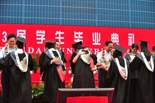 6月28日上午,复旦大学2013届本(专)科毕业典礼暨学位授予仪式在复旦大学正大体育馆隆重举行。3400多名2013届毕业生,近400名教师与中学校长代表和近千名家长,共同见证了这一庄严的时刻。复旦大学校长杨玉良及其他校党政领导出席了当天的毕业典礼。