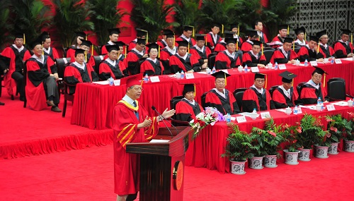 毕业典礼的最后,校长杨玉良在全场雷鸣般的掌声中,发表了演讲,寄语全体毕业生。
