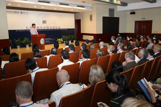 为贯彻落实《孔子学院发展规划(2012-2020)》,加强孔子学院建设,交流办学经验,由孔子学院总部(国家汉办)主办、复旦大学承办的2013年孔子学院外方院长系列研修班7月21日在复旦大学开幕。