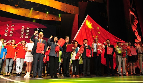 新闻中心讯 9月8日,在第29个教师节即将来临之际,上海市教卫工作党委、上海市教委举行了“2013年上海市庆祝教师节主题活动”。当天公布了第三届上海市教育功臣,我校附属中山医院汤钊猷院士榜上有名。我校哲学学院俞吾金教授获“第三届上海市教书育人楷模”。