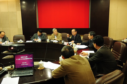 校党委书记朱之文在主持学习会时指出,十八届三中全会是在我国改革开放新的重要关头召开的一次重要会议,是全面深化改革的又一次总部署、总动员,必将对推动中国特色社会主义事业产生重大影响,也必将对复旦大学建设世界一流大学产生重大影响。他强调,学习贯彻十八届三中全会精神是当前和今后一段时间的一项重要任务,要把学习贯彻三中全会精神与贯彻落实学校第十四次党代会精神紧密结合起来,一是要充分发挥党委中心组、党委党校的作用,利用形势政策报告会、干部培训等形式,深入学习三中全会精神,在全校营造良好的学习氛围。二是要充分发挥学校学科优势和专家资源,通过理论研讨会、专家访谈等形式,鼓励专家学者深入解读三中全会精神,在推动理论创新上有所作为。三是要借助三中全会召开的契机,深入思考学校改革发展的顶层设计,更加积极主动地服务于国家战略,进一步推动学校第十四次党代会精神的贯彻落实,为建设世界一流大学和实现中华民族伟大复兴的中国梦而努力奋斗。