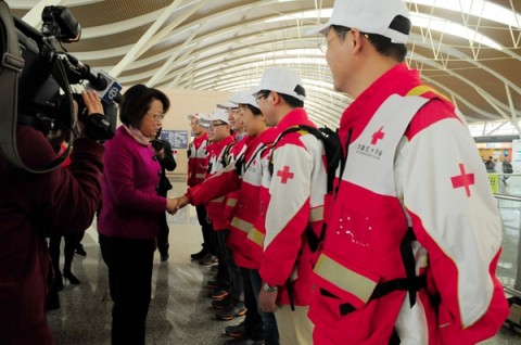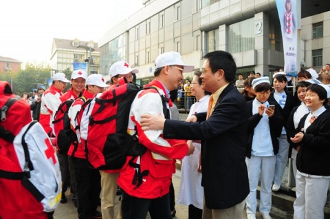 11月22日上午10:50,华山医院派出7名医疗救援队员登上了飞赴菲律宾首都马尼拉的班机,他们将加入由中国红十字会组织的中国红十字国际救援队奔赴菲律宾台风灾区。这也是我国向国际社会承诺派出紧急医疗救援队后,首支由上海开拔的救援队。清晨,华山医院领导班子及广大同仁在大道上集结,欢送赴菲医疗救援队,丁强院长为救援队授队旗。上海市副市长翁铁慧、市卫生计生委党委书记黄红,市红十字会常务副会长马强、复旦大学党委副书记袁正宏及华山医院院长丁强、副院长邵建华、靳建平等领导到机场为队员送行。