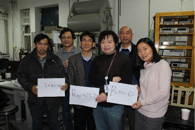 “在这项研究上,我们投入了四年多时间,制备了一千多种样品,参与项目的学生就有二十多个人。”在一步步尝试与优化后,2012年12月,薛其坤团队终于在一种磁性拓扑绝缘体,Cr掺杂的(Bi,Sb)₂Te₃薄膜上观测到了完美的量子化平台。这一成果标志着首次在零磁场条件下观察到了量子化的霍尔电阻,量子反常霍尔效应被发现了。
