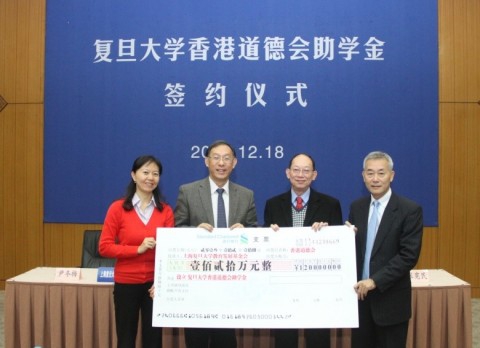 本次香港道德会向复旦大学教育发展基金会捐赠设立“复旦大学香港道德会助学金”,用于资助2013-2014学年四百名品学兼优而家庭困难的复旦大学学生,帮助他们顺利完成本科或研究生学习。这也是目前复旦大学接受社会捐赠的年度资助规模最高的一笔学生助学金。