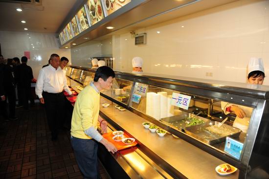 9、11月6日,马云、马明哲、马化腾三位互联网巨头亮相我校,在光华楼与郭广昌校友一道共话互联网金融。校长杨玉良与参加活动的嘉宾在旦苑食堂共进午餐。图为“三马”排队取餐。