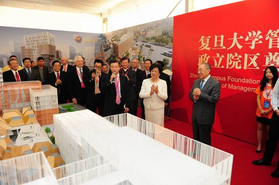 7、10月12日下午,在管理学院国际顾问委员会成立之际,复旦大学管理学院政立院区奠基仪式于同日举行。李岚清校友、陈至立校友等嘉宾一同参观新园区建筑模型。