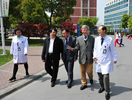 4、4月10日下午2点,上海首例人感染H7N9禽流感患者痊愈出院。这名患者是本市一名3岁7个月的男童,在复旦大学附属儿科医院经过五天的抗病毒治疗,体温正常,胃口良好,各项化验结果和胸片检查均为正常后,治愈出院。图为朱之文、杨玉良在儿科医院调研H7N9防治情况。