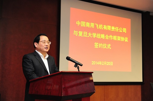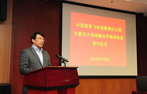 校党委书记朱之文在致辞中表示,“商飞人”那种“建成创新型国家的标志性工程,建成国际一流航空企业”的责任感和使命感,那种“长期奋斗、长期攻关、长期吃苦、长期奉献”的精神和信念令人钦佩、令人感动,值得我们学习发扬。发展大型飞机项目是国家的重大战略,是中国工业由“中国制造”向“中国创造”迈进的重要标志。复旦大学作为国家重点建设的一所大学,肩负着为国家培养高层次人才、推动科技创新的重要使命;复旦人一直关注着中国商飞的发展和我国大飞机的研制。学校在相关学科有着深厚的积淀,特别是在流体力学、飞行器总体设计、新能源材料、涂层材料、新型材料和器件研发、材料失效分析、电子信息等方向拥有较强的研究实力和优秀的科研团队,并已经与商飞公司开展了多个科研合作项目,为双方实施战略合作奠定了坚实的基础。