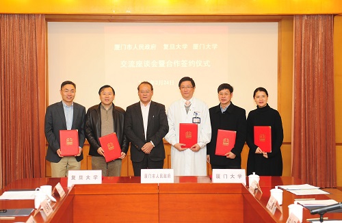 新闻中心讯 2月24日,复旦大学与厦门市政府、厦门大学签署“两校一市”合作协议,三方将在决策咨询服务、产学研结合、提升厦门医学水平等领域发挥各自优势,开展更加深入的合作。
