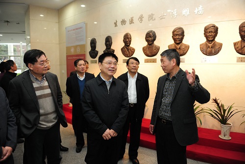 仪式前,王蒙徽一行考察了我校附属儿科医院、附属中山医院心血管科、上海医学院生物医学研究院等单位。厦门市委副书记钟兴国、厦门市委常委、秘书长臧杰斌、厦门市委常委、常务副市长林国耀、副市长黄强,校党委副书记袁正宏、党委副书记刘承功,厦门市、厦门大学及我校有关部门负责人参加上述活动。