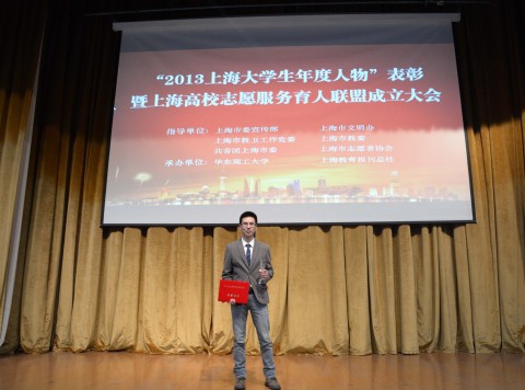 3月4日,2013年上海大学生年度人物评选活动表彰会在华东理工大学举行,我校博士研究生仰志斌荣获“2013上海大学生年度人物”称号。