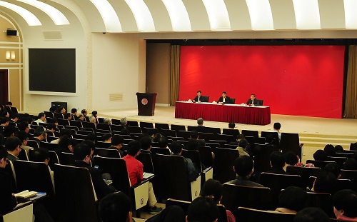 新闻中心讯 3月18日,我校举行中层干部大会,传达全国“两会”精神。全国人大代表、校党委书记朱之文,全国政协常委、民进中央副主席、副校长蔡达峰分别作了传达。校党委副书记陈立民主持会议。