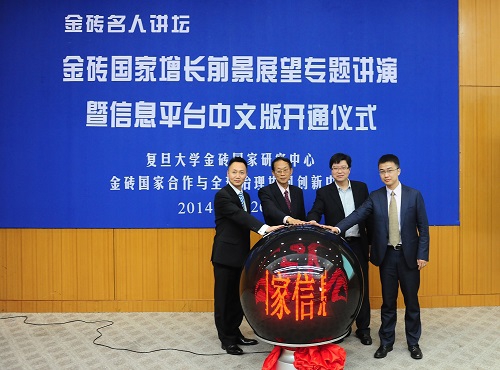 新闻中心讯 3月26日,“金砖国家信息共享与交流平台”中文版在复旦大学正式开通。金砖国家工商理事会中方理事会秘书处宣布今后将与复旦大学金砖国家研究中心共同建设该信息平台。前驻南非大使刘贵今、金砖国家工商理事会中方理事会秘书长许超等在开通仪式作了主题讲演。复旦大学副校长林尚立出席了开通仪式并致辞。