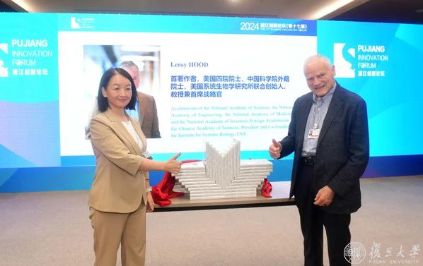 在本届论坛亮点之一“国际人类表型组论坛:表型组与精准医学专题论坛”上,由胡德院士与美国系统生物学研究所教授内森·普赖斯(Nathan Price)共同撰写,复旦大学校长、中国科学院院士金力担任主审的国际人类表型组计划系列丛书的开篇之作——《科学驱动的全面健康时代》举行了新书发布会。会上,胡德院士介绍了自己的创作经历并亲自为新书揭幕。