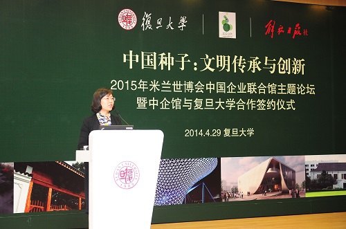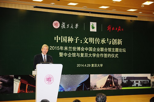 新闻中心讯 4月29日,在距意大利2015年米兰世博会开幕倒计时一周年之际,由复旦大学、解放日报和中国企业联合馆共同主办的中国企业联合馆首场主题论坛在复旦大学管理学院举行。上海市政协副主席周汉民、复旦大学校长杨玉良出席。