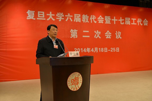 校党委副书记刘承功向代表们宣讲了《2014年复旦大学校园文化系列活动方案》。此次活动以培育和实践社会主义核心价值观、弘扬爱国荣校传统为主题,结合校庆、运动会、毕业生离校、教师节、国庆节、新生入学教育等开展系列活动,激发广大师生员工为实现“中国梦”、“复旦梦”团结奋斗。大会还听取了工会副主席王丽军所作的《复旦大学六届二次教代会提案工作情况报告》,对2013年六届一次教代会提案的办理情况及提案工作存在的问题和今后努力方向作了说明。