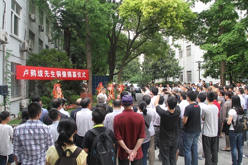 据悉,复旦大学为让更多的复旦学子铭记先生品格和风范,激励复旦学子努力前程,特在卢鹤绂生前工作过的复旦大学现代物理研究所竖立先生铜像。纪念会结束后,杨玉良、赵雯和卢永亮为铜像揭幕。