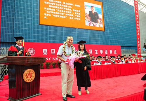 毕业难忘师恩。副校长陆昉教授宣读了“我心目中的好老师”名单,这些老师由全校的毕业生投票选出,其中既有为本科生授课的教师和班级导师,也包括辅导员老师。2014届毕业生代表为好老师献上鲜花,深情拥抱。2014年“我心目中的好老师”、物理学系金晓峰教授在当天的毕业典礼上寄语2014届毕业生。