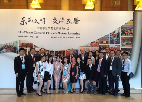 在机制大会前,刘延东副总理与瓦西利乌委员共同出席了“东西文明 交流互鉴——中欧学生学者文明担当”论坛开幕式。该论坛由复旦、人大、川大三校承办,分三场分论坛,分别为“文明传承与复兴”、“文明交流与对话”、“文明创新与转型”。6日下午在钓鱼台举办的一场为复旦场,主题为“文明传承与复兴”。复旦大学国际关系与公共事务学院张骥老师带领15名中欧学生代表参加了此次论坛。