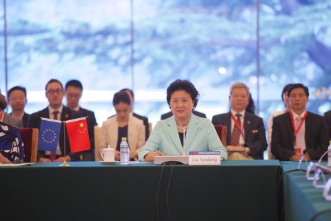 刘延东副总理就中欧人文交流提出三点倡议:第一,加强交流互鉴,做增进理解信任的“孵化器”。第二,坚持以人为本,做强化中欧合作的“稳定器”。第三,促进文明共荣,做发展全球治理的“推进器”。