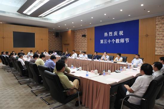 9月10日,我校举行教师代表座谈会,庆祝第三十个教师节。校党委书记朱之文主持会议,校长杨玉良出席并讲话,常务副校长陈晓漫、校党委副书记刘承功出席座谈会。2014年国家级教学成果特等奖获得者、上海医学院汪玲教授介绍了9月9日赴京参加庆祝第三十个教师节暨全国教育系统先进集体和先进个人表彰大会,并受到习近平总书记亲切会见的有关情况。2014年全国模范教师、数学学院陈纪修教授,宝钢优秀教师特等奖获得者、哲学学院吴晓明教授,国家社科重大项目首席专家、马克思主义学院杜艳华教授,“973”计划青年专项首席科学家、计算机学院杨珉副教授和上海市育才奖获得者、护理学院学工组长李颖等作为教师代表发言。