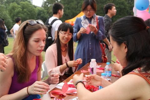 活动吸引了大批师生前来参与,场面热闹非凡。庆典现场共六处展台,分别展示了中国传统文化以及由复旦大学与外方合办的七所孔院的风采,包括瑞典斯德哥尔摩大学孔子学院、新西兰奥克兰大学孔子学院、澳大利亚悉尼大学孔子学院、德国法兰克福大学孔子学院、德国汉堡大学孔子学院、英国爱丁堡大学苏格兰孔子学院、英国诺丁汉大学孔子学院。同学们通过参观各处展台,参与有关孔子学院的知识问答活动,不仅可以了解到孔子学院的基本情况,还可以亲身参与独具中国特色的文化体验活动,包括剪纸、捏面人、书法和编织中国结等。