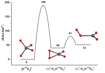 从2009年开始,复旦大学的周鸣飞教授课题组与德国柏林自由大学的Riedel教授合作,开展了高氧化价态化合物的实验制备及其化学性质研究工作。2009年他们通过金属铱原子和氧气分子反应的方法首次在低温稀有气体基质中制备了四氧化铱中性分子,红外吸收光谱实验结合量子化学理论计算证明该分子中的铱(具有d1价电子组态)处于VIII价态,表明除了钌、锇和氙三种元素以外,铱元素也可以形成VIII价态化合物。相关工作发表于国际化学领域重要期刊《德国应用化学》(Angew. Chem. Int. Ed.)上,并被美国化学会《化学与工程新闻》杂志以“Unprecedented Iridium (VIII) seen”为题作了亮点报道。在此项工作的基础上,他们提出若进一步将中性四氧化铱分子的d电子电离生成四氧化铱正离子,则铱将有可能处于IX价态。为了从实验上验证这一观点,周鸣飞课题组采用脉冲激光溅射-超声分子束载带技术在气相条件下制备了四氧化铱离子,采用课题组最近建立的串级飞行时间质谱-红外光解离光谱技术成功获得了气相四氧化铱离子的红外振动光谱,首次证实了气相四氧化铱离子具有正四面体结构,其中的铱处于IX价态,从而在实验上确定了IX价态化合物的存在。