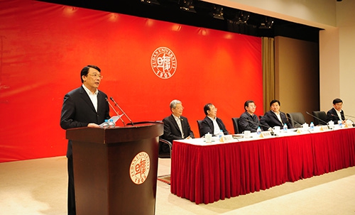 朱之文代表学校党委表示,坚决拥护中央的决定。他指出,五年多来,学校各项改革深入推进,各项事业加快发展,为建设世界一流大学奠定了坚实的基础。这些成绩是全校师生员工团结努力、共同奋斗的结果,杨玉良校长为之发挥了重要作用,作出了重大贡献。杨玉良同志是一位学术造诣很深的科学家,也是一位优秀的大学校长,他心系国家、热爱教育,视野开阔、思维活跃,作风正派、廉洁勤勉,团结同志、待人坦诚,全身心投入学校管理工作,为复旦加快发展倾注了心血、智慧和力量,以他对教育事业的高度责任感和个人的学术魅力赢得了全校师生的尊敬,也赢得了兄弟高校和社会各界的敬重。朱之文指出,许宁生同志是一位在物理学领域取得突出成就的科学家,他既有海外留学和工作的经历,具有宽广的国际视野,又有丰富的高等教育管理经验,中央决定选派许宁生同志来复旦工作,充分体现了中央对复旦大学的关心、重视和支持。朱之文代表学校党委和全体师生员工对许宁生同志担任复旦大学校长表示热烈欢迎,他表示,将全力支持许宁生校长的工作,相信许宁生校长的到来必将为复旦的发展带来新的优势、新的力量、新的活力。