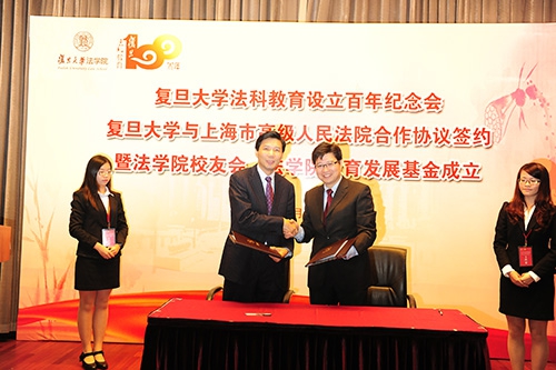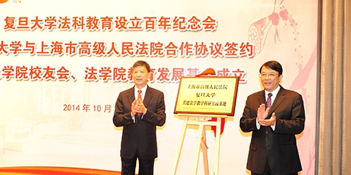 时值党的十八届四中全会胜利召开,审议通过《中共中央关于全面推进依法治国若干重大问题的决定》之际,我校举行复旦法科教育设立百年纪念会,回顾百年法科教育历程,展望依法治国大格局下法学教育的转型发展。会上,我校与上海市高级人民法院正式签署了战略合作协议。