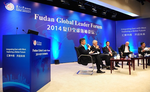 英国上议院中立议员、英国宪法特别委员会成员、学院顾问委员会副主席鲍威尔勋爵,中国东方航空集团公司总经理、中国东方航空股份有限公司董事长、学院顾问委员会副主席刘绍勇,美国硅谷银行董事长、学院顾问委员魏高思,恒隆集团董事长、恒隆地产有限公司董事长、学院顾问委员陈启宗在当日举办的首场复旦全球领袖论坛上发表精彩演讲。
