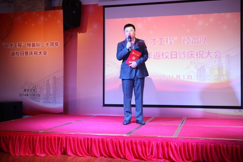 党委副书记尹冬梅代表学校致辞,感谢队员们为学校育人工作做出的重要贡献,欢迎队员常回家看看。学校将筹备成立复旦大学校友会“人才工程”分会,搭建学校与队员、队员与队员之间的交流平台。随后,播放“人才工程”预备队二十周年纪念短片,通过新老队员的回顾、重温“人才工程”的发展历程和价值追求,勾起了队员们对那段心路历程的点滴回忆,现场洋溢着温馨与感动的氛围。一位已经毕业的老队员动情地说:“每一位队员都拥有属于自己的珍贵回忆,每一段灿烂岁月都意味着不可代替。能够为二十岁的‘人才工程’预备队过生日,发自内心地感到高兴。能够有我们队伍自己的校友会,让失散多年的伙伴们相互联系和支持,是很好的做法。”