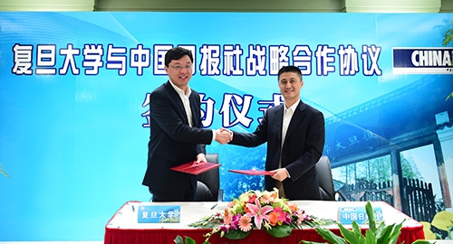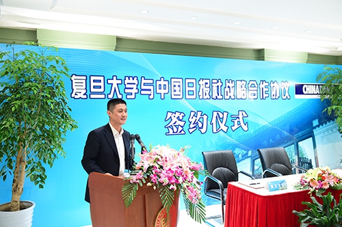 高岸明在签约仪式上表示,复旦大学务实的传统、深入研究的风范令他印象深刻,复旦专家的精彩见地使他在如何做好《中国日报》的国际传播和国际化人才培养的问题上获得了新的启发;双方具有极强的优势互补效应和宽广的战略合作空间,在共同努力下必将形成跨界联合、优势互补的范例,促进对外传播和高等教育事业的发展。