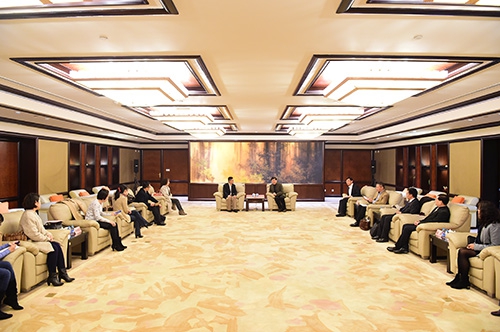 新闻中心讯 12月9日,我校与中国日报社签署战略合作协议。校长许宁生会见了中国日报社一行。中国日报社副总编辑高岸明,校党委副书记刘承功等出席了签约仪式。中国日报社上海分社社长杨春亚、事业发展部主任王钰、事业发展部副主任吴蕾、上海分社副总编辑徐晓民 、上海分社发行部总监胡文娜等,及我校特聘教授、中国发展模式研究中心主任张维为,国务学院党委副书记兼副院长苏长和,外文学院学术委员会副主任孙建等参加活动。