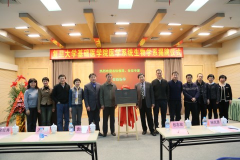 2015年1月21日下午14:00,复旦大学基础医学院医学系统生物学系成立揭牌仪式在枫林校区明道楼二楼多功能厅隆重举行。上海医学院副院长包志宏、生物医学研究院院长杨芃原、党委书记储以微、基础医学院院长汤其群、党委书记袁继鼎、副院长钱睿哲、姜宴、基础医学院系主任代表以及医学系统生物学系教职工等出席仪式。会议还荣幸的邀请到中科院北京基因组研究所、华大基因研究中心刘斯奇研究员,中科院上海生科院生化细胞所雷鸣研究员,中科院上海生科院计算生物学研究所韩敬东研究员,中科院上海药物所左建平研究员。揭牌仪式由基础医学院党委书记袁继鼎主持。