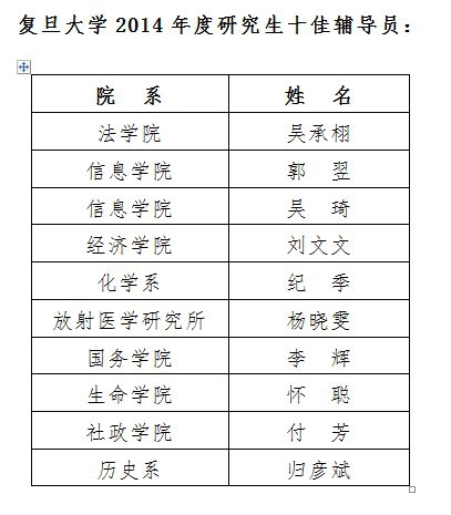本次评选最终有10位老师荣获复旦大学2014年度研究生十佳辅导员称号,他们是:法学院吴承栩、信息学院郭翌、信息学院吴琦、经济学院刘文文、化学系纪季、放射医学研究所杨晓雯、国务学院李辉、生命学院怀聪、社政学院付芳、历史系归彦斌,其中人才工程(二期)队员5人,青年教师兼职4人,专职辅导员1人。在辅导员这条光荣却不平坦的道路上,每位辅导员老师都有不同的育人理念与精彩体会,让我们听他们细细说来。